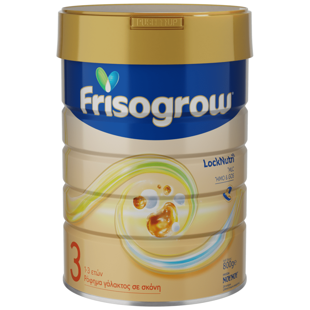 Το Frisogrow είναι ένα θρεπτικό ρόφημα γάλακτος σε σκόνη για παιδιά μικρής ηλικίας από 1 έως 3 ετών. Είναι στιγμιαίας παρασκευής, με νέα προηγμένη σύνθεση και περιλαμβάνει βιταμίνες, αμινοξέα, ιχνοστοιχεία και λιπαρά οξέα για την υγιή ανάπτυξη και κάλυψη των ιδιαίτερων διατροφικών αναγκών της νηπιακής ηλικίας. Είναι πλούσιο σε ασβέστιο & βιταμίνη D τα οποία είναι απαραίτητα για την υγιή ανάπτυξη των οστών, ενώ παράλληλα είναι πηγή σιδήρου, ο οποίος συμβάλλει στη γνωσιακή ανάπτυξη των παιδιών. Επίσης, περιέχει βιταμίνη D3 όπου με το σίδηρο, συντελούν στην ενίσχυση του ανοσοποιητικού. Το Frisogrow έχει υπέροχη γεύση που αρέσει στα παιδιά. Η νέα προηγμένη σύνθεση του Frisogrow περιέχει 2-FL (HMO) ολιγοσακχαρίτες μητρικού γάλακτος (μη ανθρώπινης προέλευσης). Παρασκευάζεται σύμφωνα με τις προδιαγραφές και επιταγές της Ευρωπαϊκής Ένωσης για τα παιδικά γάλατα.