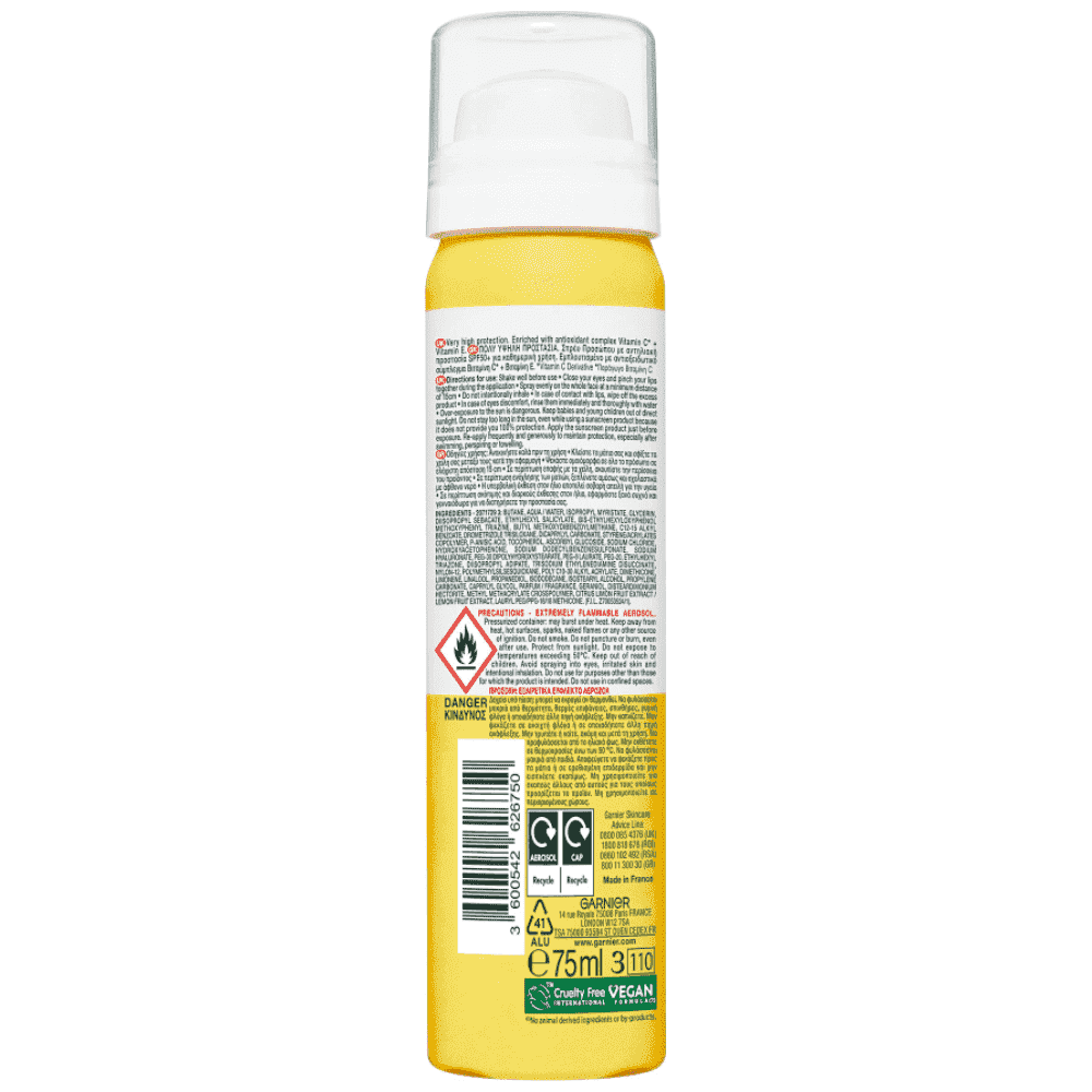 "Σπρέυ προσώπου με πολύ υψηλή αντηλιακή προστασία SPF50+ για καθημερινή χρήση. Εμπλουτισμένο με αντιοξειδωτικό σύμπλεγμα Βιταμίνης C* + Βιταμίνης Ε. Άμεση προστασία από την υπεριώδη ακτινοβολία, λαμπερή & ενυδατωμένη επιδερμίδα. Πρόληψη των σκούρων κηλίδων. Αντηλιακή προστασία σε μορφή σπρέυ οπουδήποτε & οποτεδήποτε.