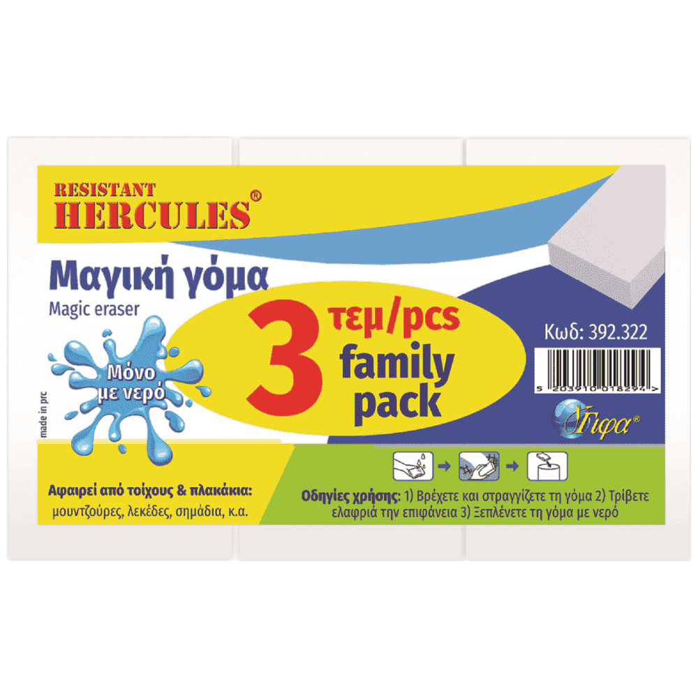 Μαγική γόμα 3 τεμ 12Χ6Χ2.6 εκ αφαιρεί μουτζούρες