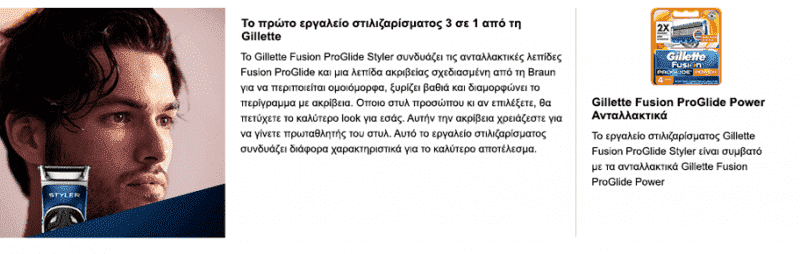 Θέλετε να δώσετε άλλον αέρα στο στυλ του προσώπου σας; Σας παρουσιάζουμε το Gillette Fusion ProGlide Styler, το εργαλείο στυλιζαρίσματος 3 σε 1 για τις τρίχες του προσώπου που περιποιείται ομοιόμορφα, ξυρίζει βαθιά και διαμορφώνει το περίγραμμα με ακρίβεια. Oποιο στυλ προσώπου κι αν επιλέξετε, είτε πρόκειται για ένα απλό μουσάκι στην άκρη του πηγουνιού, είτε για λεπτή λωρίδα πηγουνιού είτε για ένα βαθύ ξύρισμα με μυτερές φαβορίτες, θα πετύχετε το καλύτερο look για εσάς, ακόμα και μέσα στο ντους. Το Gillette Fusion ProGlide Styler είναι αδιάβροχο και εντελώς ασφαλές για χρήση σε υγρό περιβάλλον.