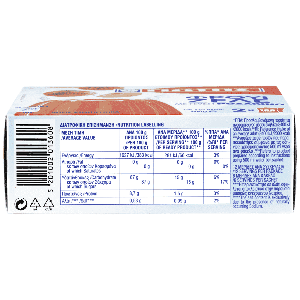 | Συνολικά λιπαρά | 0g | 0g | 0% |