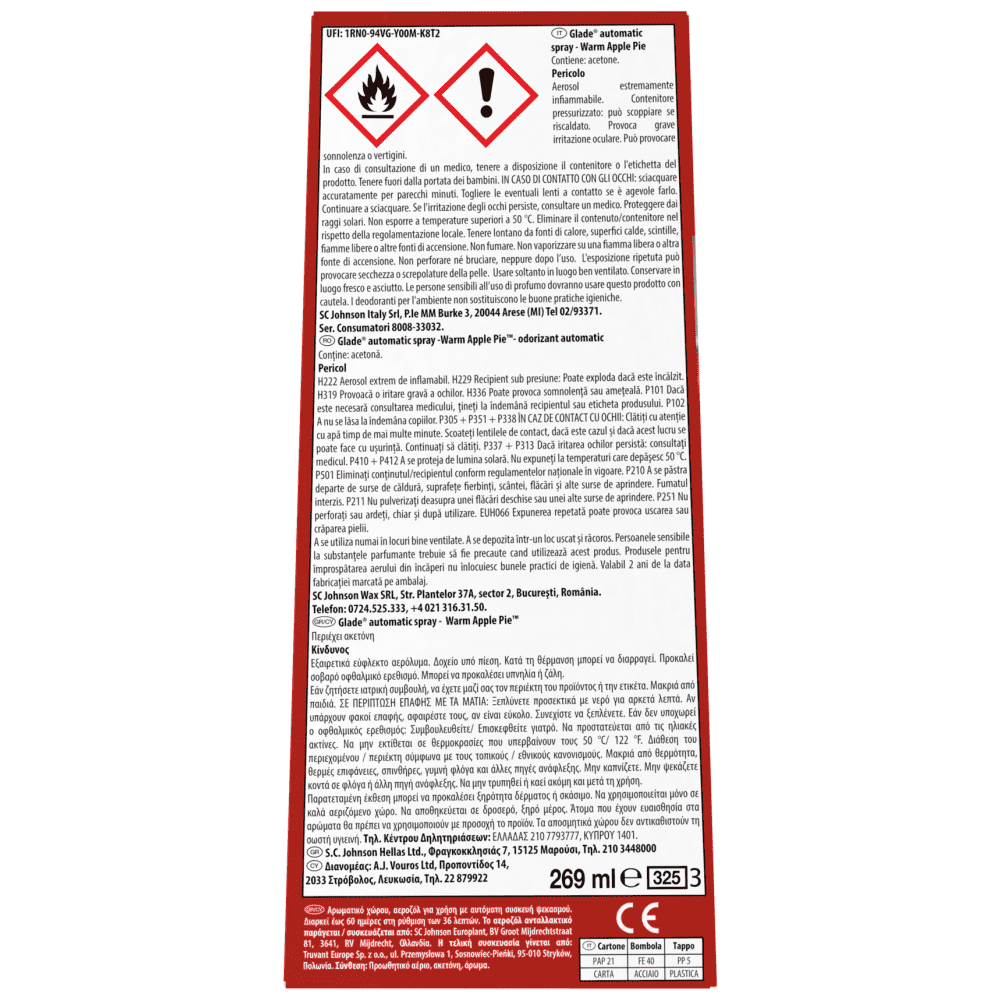 Glade automatic spray - Warm Apple Pie(TM). ΚΙΝΔΥΝΟΣ.