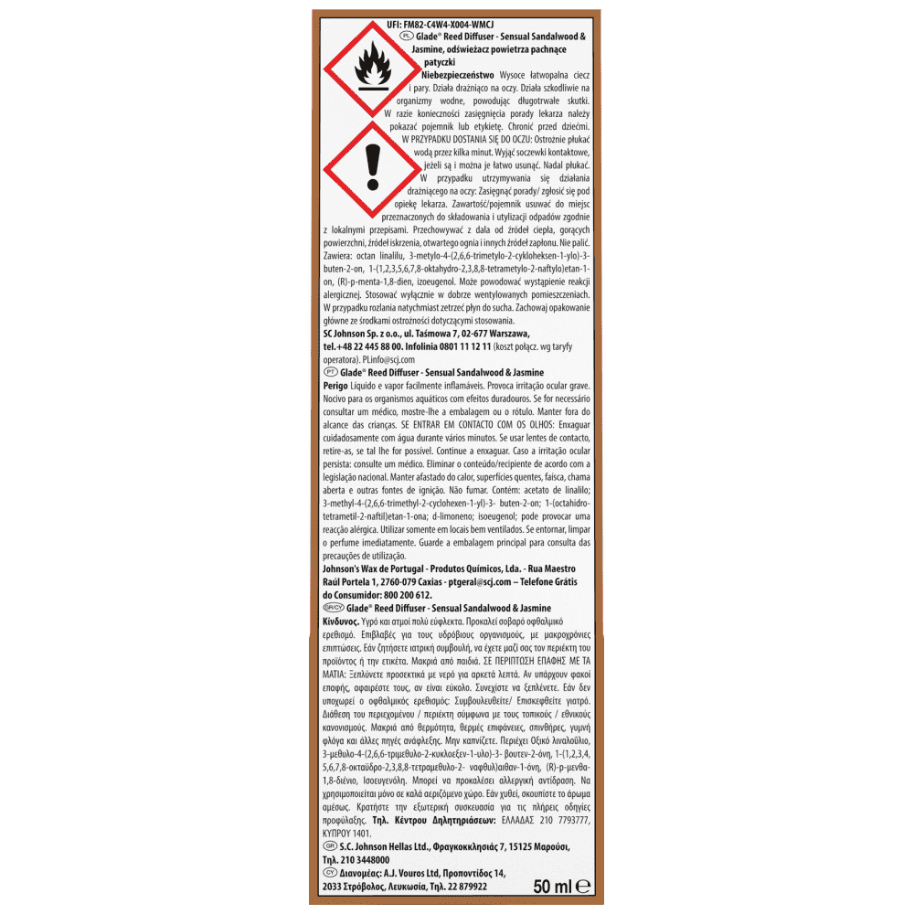 Άτομα που έχουν ευαισθησία στα αρώματα θα πρέπει να χρησιμοποιούν με προσοχή το προϊόν. Τα αποσμητικά χώρου δεν αντικαθιστούν τη σωστή υγιεινή."