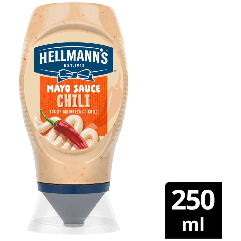 Νέα Hellmann's Μαγιονέζα με Chili. Απαλή μαγιονέζα με πικάντικη νότα τσίλι που χαρίζει μια διακριτική, ευχάριστη καυτερή ένταση σε κάθε μπουκιά. Κατάλληλη για χορτοφάγους!