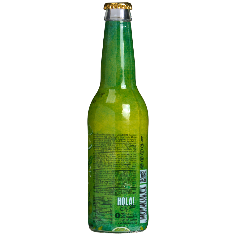 Εμπνευσμένα από ανθρώπους με πάθος, τα HOLA! ESPIRITO Cocktails No Added Sugar συνδυάζουν άριστα υλικά με πλούσιες γεύσεις καλοκαιρινών φρούτων. Κάθε συστατικό είναι πολύ προσεχτικά επιλεγμένο και δίνει μοναδική αίσθηση δροσιάς και ανανέωσης. Με 4,5% αλκοόλ. Έτοιμο αεριούχο ποτό με αλκοόλη με γεύση Mojito.