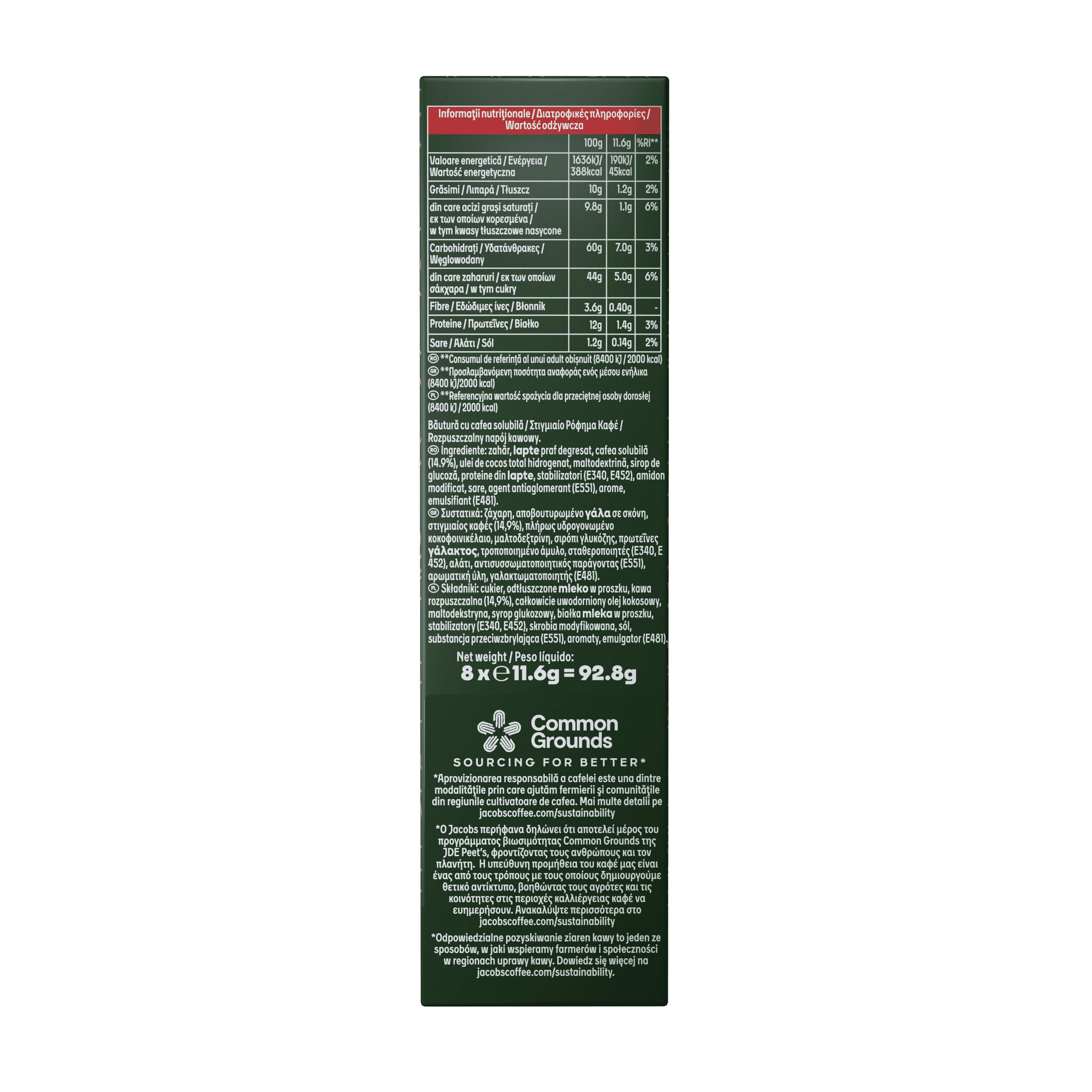 Στιγμιαίο ρόφημα καφέ cappuccino σε σκόνη. Διατίθεται σε sticks για να απολαμβάνετε τον αγαπημένο σας JACOBS cappuccino με πλούσια κρέμα όπου κι αν βρίσκεστε.
