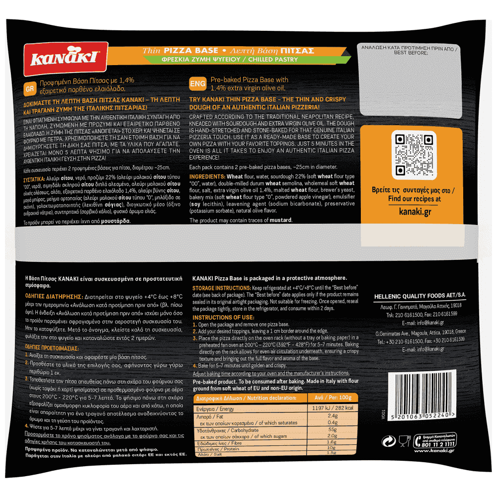 Κάθε συσκευασία περιέχει 2 τεμάχια. Ανοίξτε τη συσκευασία, βγάλτε τη μια βάση, προσθέστε σάλτσα, τυρί και αλλαντικά της επιλογής σας και βάλτε τη στο φούρνο σας απευθείας πάνω στη σχάρα για να γίνει απολαυστικά καλοψημένη. Η πίτσα σας θα είναι έτοιμη μέσα σε 5 μόνο λεπτά!