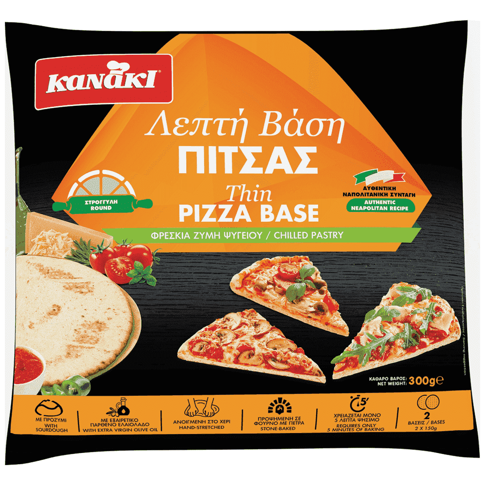 Είναι φτιαγμένη σύμφωνα με την αυθεντική Ναπολιτάνικη συνταγή με ζωντανό προζύμι και εξαιρετικό παρθένο ελαιόλαδο. Ανοίγεται στο χέρι και ψήνεται σε φούρνο με πέτρα. Το αποτέλεσμα είναι αντίστοιχο με αυτό που θα δοκιμάσετε σε μια παραδοσιακή ιταλική πιτσαρία! Λεπτή μυρωδάτη ζύμη από το προζύμι και το ελαιόλαδο συνοδεύουν τα υλικά που επιλέξατε να τις συνοδεύσουν.