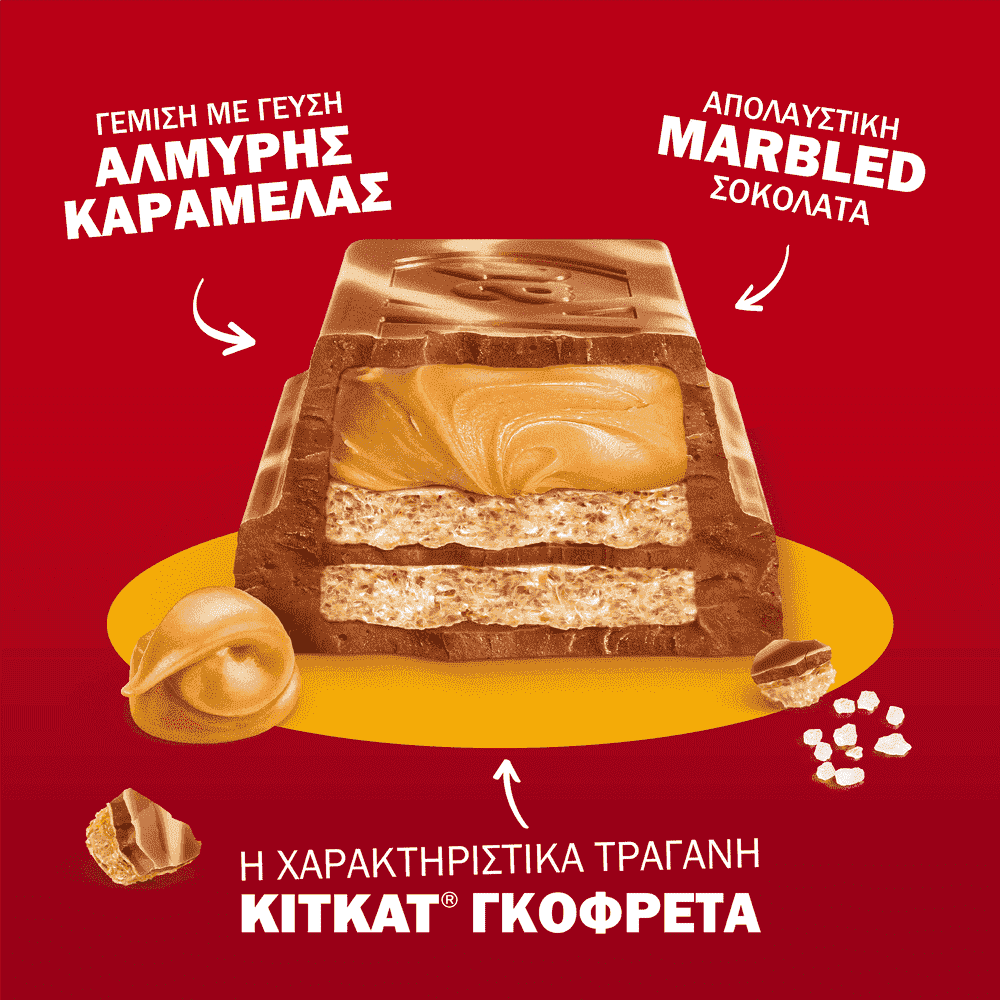 Η KitKat τώρα και σε ταμπλέτα! Είναι η KitKat, αλλά όχι όπως την ξέρετε μέχρι τώρα: Η χαρακτηριστικά τραγανή γκοφρέτα της KitKat προσφέρει μία εντελώς ΝΕΑ εμπειρία που συναρπάζει όλες τις αισθήσεις με απολαυστική γέμιση με γεύση αλμυρής καραμέλας & marbled σοκολάτα γάλακτος. Είναι αδύνατο να αντισταθείς! Δοκίμασέ τη κι εσύ & ανακάλυψε ένα νέο απολαυστικό τρόπο να κάνεις διάλειμμα! Η μοναδική πολυαισθητηριακή εμπειρία των KitKat ταμπλετών ήρθε για να σε συναρπάσει: -σε 3 φανταστικές γεύσες (Hazelnut, Double Chocolate & Salted Caramel) -με μοναδική marbled εμφάνιση -ιδανική για να τη μοιραστείς: Απλώς την ανοίγεις, κόβεις, σπας & την απολαμβάνεις μόνος ή παρέα με τους αγαπημένους σου!