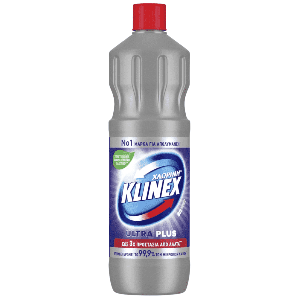 Η ΧΛΩΡΙΝΗ KLINEX ULTRA, με παχύρευστη σύνθεση και τη μοναδική και κατοχυρωμένη τεχνολογία C-TAC, αποτρέπει τη συσσώρευση αλάτων έως 3 φορές περισσότερο^ προσφέροντας λάμψη που διαρκεί. Επιπλέον προσκολλάται στο πουρί, τα άλατα και τη σκληρή βρωμιά εξουδετερώνοντας μικρόβια που αναπτύσσονται εκεί.