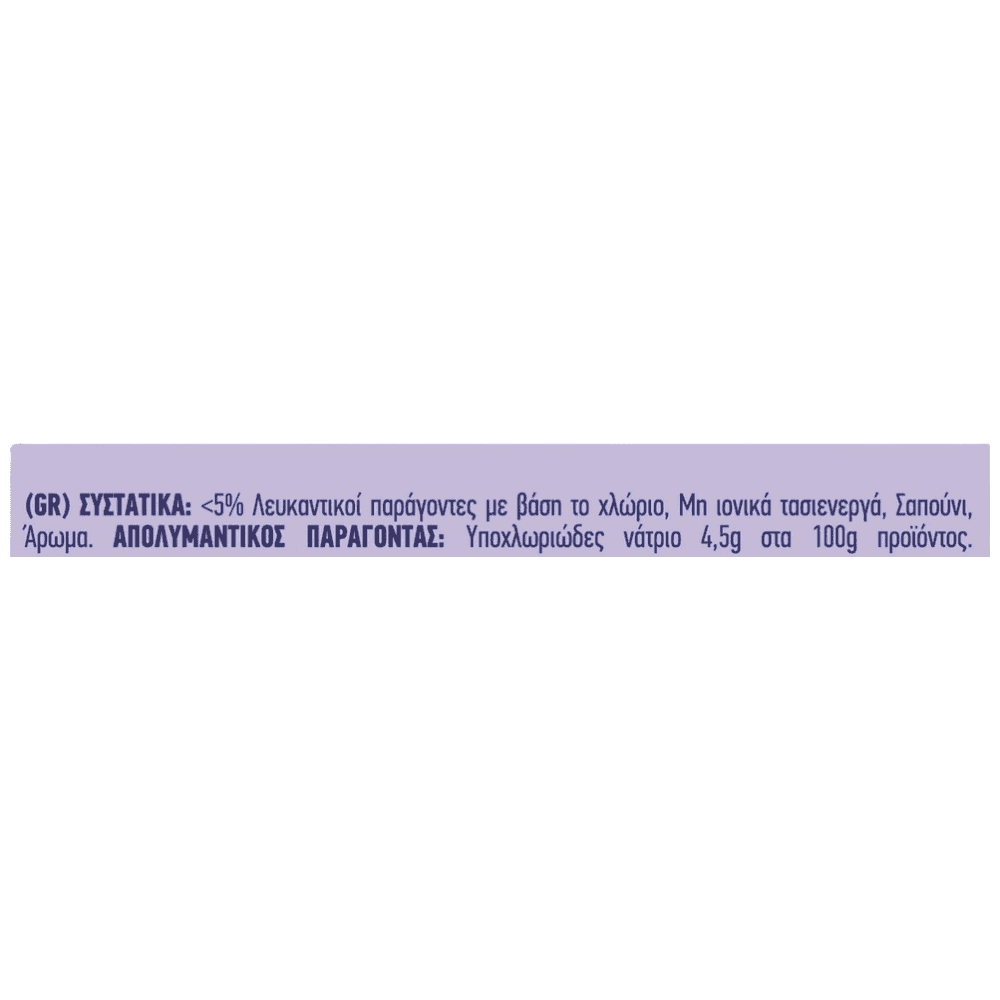 ΑΠΟΛΥΜΑΝΤΙΚΟΣ ΠΑΡΑΓΟΝΤΑΣ: Υποχλωριώδες νάτριο 4,5g στα 100g.
