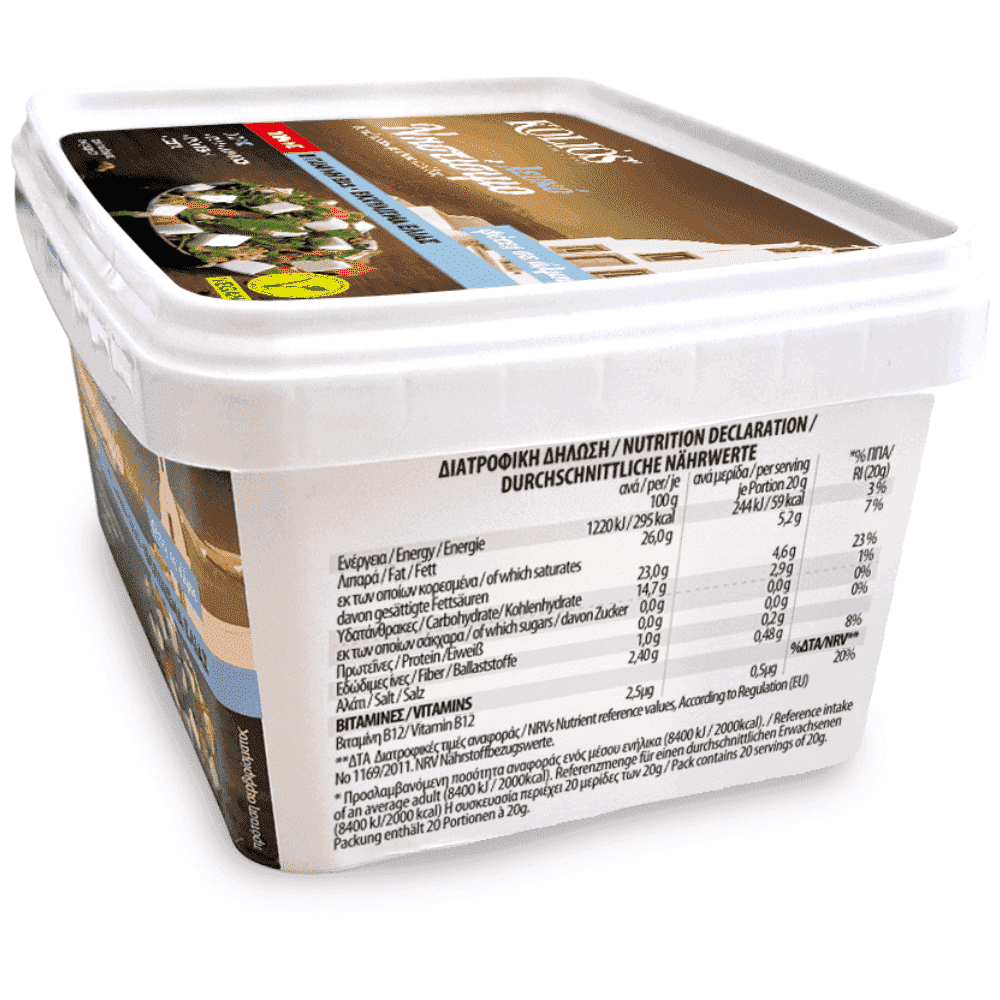 | Ενέργεια | 1220kJ/295kcal | 244kJ/59kcal | 3% |