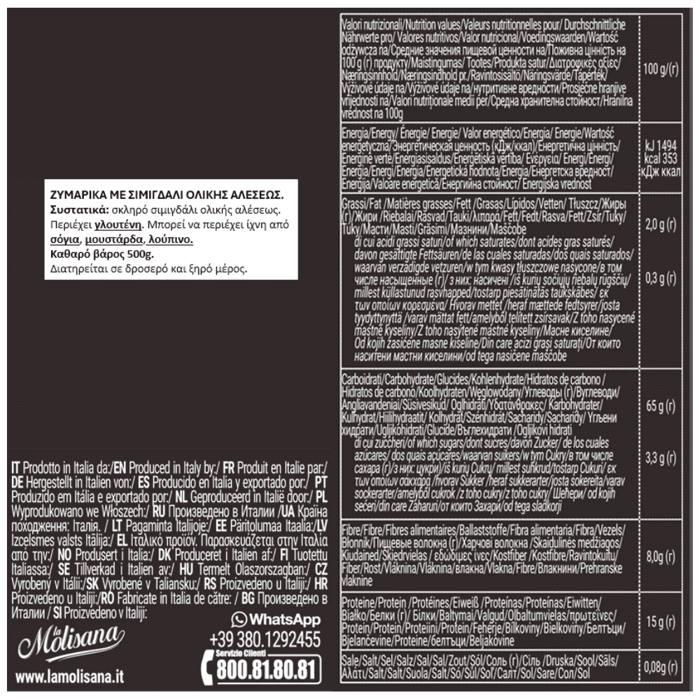 Αυθεντικά Ιταλικά Ζυμαρικά Farfalle Integrali premium ποιότητας, από 100% ιταλικό σιμιγδάλι σκληρού σίτου ολικής αλέσεως βιώσιμης καλλιέργειας. Η αποφλοίωση του σιταριού γίνεται παραδοσιακά με πέτρες, ενώ το καλούπι από μπρούτζο δίνει στα ζυμαρικά La Molisana μια ελαφρώς τραχιά υφή που παγιδεύει την σάλτσα στα μακαρόνια και κορυφώνει την γευστική μας απόλαυση. Ιδιαίτερα ανθεκτικά στο μαγείρεμα, εύπεπτα και υψηλής περιεκτικότητας σε πρωτεΐνη.