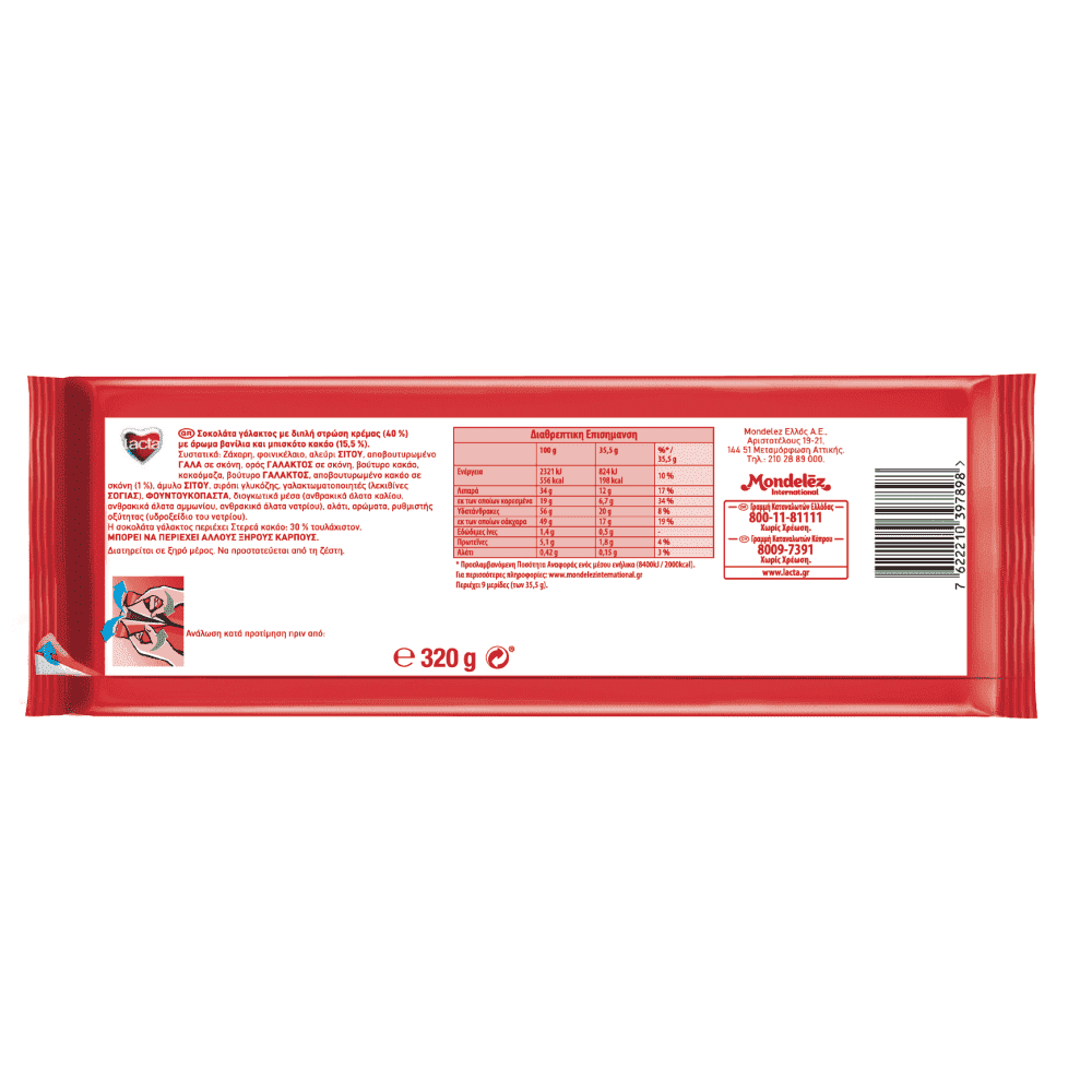 Mondelez Ελλάς Α.Ε. 12ο χλμ. Εθνικής οδού Αθηνών Λαμίας, 144 52 Μεταμόρφωση Αττικής. Γραμμή Καταναλωτών Ελλάδας Τηλ.: 210 28 89 000 Γραμμή Καταναλωτών Κύπρου Τηλ.: 8009-7391. Χωρίς χρέωση