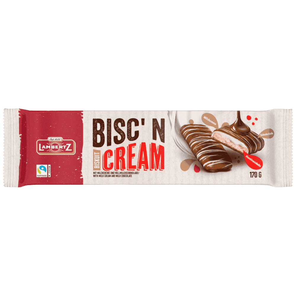 Τα Bisc’n Cream Milk της Lambertz προσφέρουν τον ιδανικό συνδυασμό τραγανού μπισκότου και απαλής γέμισης γάλακτος. Μια γλυκιά επιλογή για όλες τις ηλικίες, ιδανική για διάλειμμα, καφέ ή οικογενειακές στιγμές απόλαυσης με αξιόπιστη ποιότητα Lambertz.