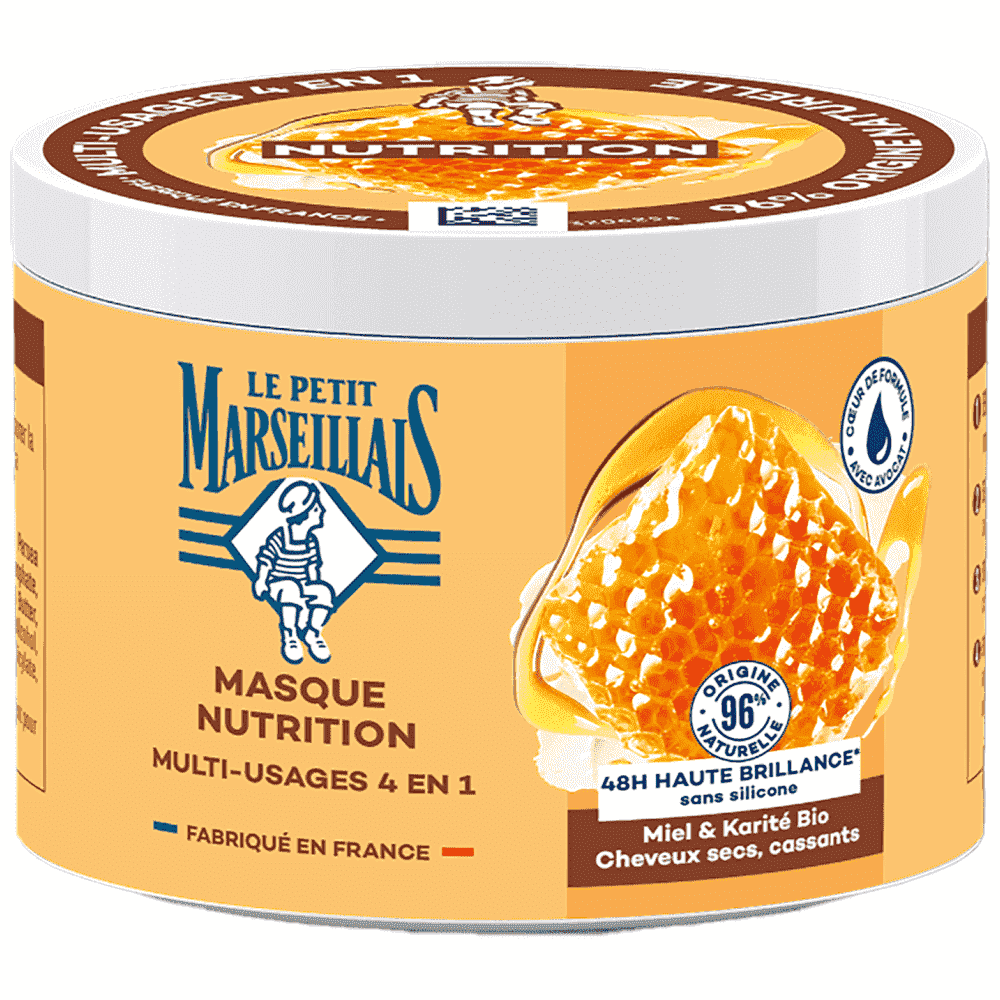 Μάσκα μαλλιών Le Petit Marseillais ΘΡΕΨΗ με ΒΙΟΛΟΓΙΚΟ Μέλι Προβηγκίας και ΒΙΟΛΟΓΙΚΟ Καριτέ 3 σε 1 θρέφει, μαλακώνει και αναδομεί ξηρά και ταλαιπωρημένα μαλλιά.