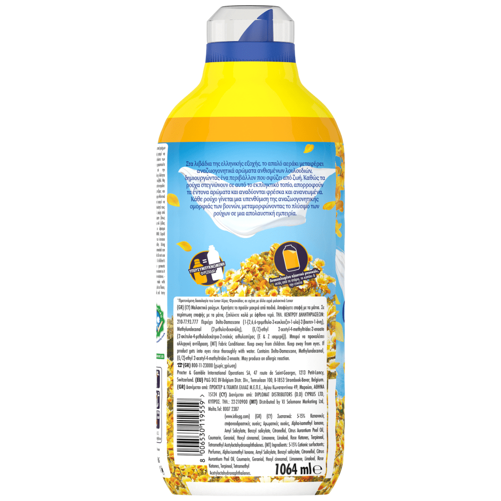 Δοκιμάστε το νέο μαλακτικό ρούχων Lenor Fresh Air Ολάνθιστο Λιβάδι και απολαύστε φρέσκα ρούχα σαν να έχουν στεγνώσει στην ελληνική εξοχή! Στα λιβάδια της ελληνικής εξοχής, το απαλό αεράκι μεταφέρει αναζωογονητικά αρώματα ανθισμένων λουλουδιών, δημιουργώντας ένα περιβάλλον που σφύζει από ζωή. Καθώς τα ρούχα στεγνώνουν σε αυτό το εκπληκτικό τοπίο, απορροφούν τα έντονα αρώματα και αναδύονται φρέσκα και ανανεωμένα. Κάθε ρούχο γίνεται μια υπενθύμιση της αναζωογονητικής ομορφιάς των βουνών, μεταμορφώνοντας το πλύσιμο των ρούχων, σε μια απολαυστική εμπειρία.
