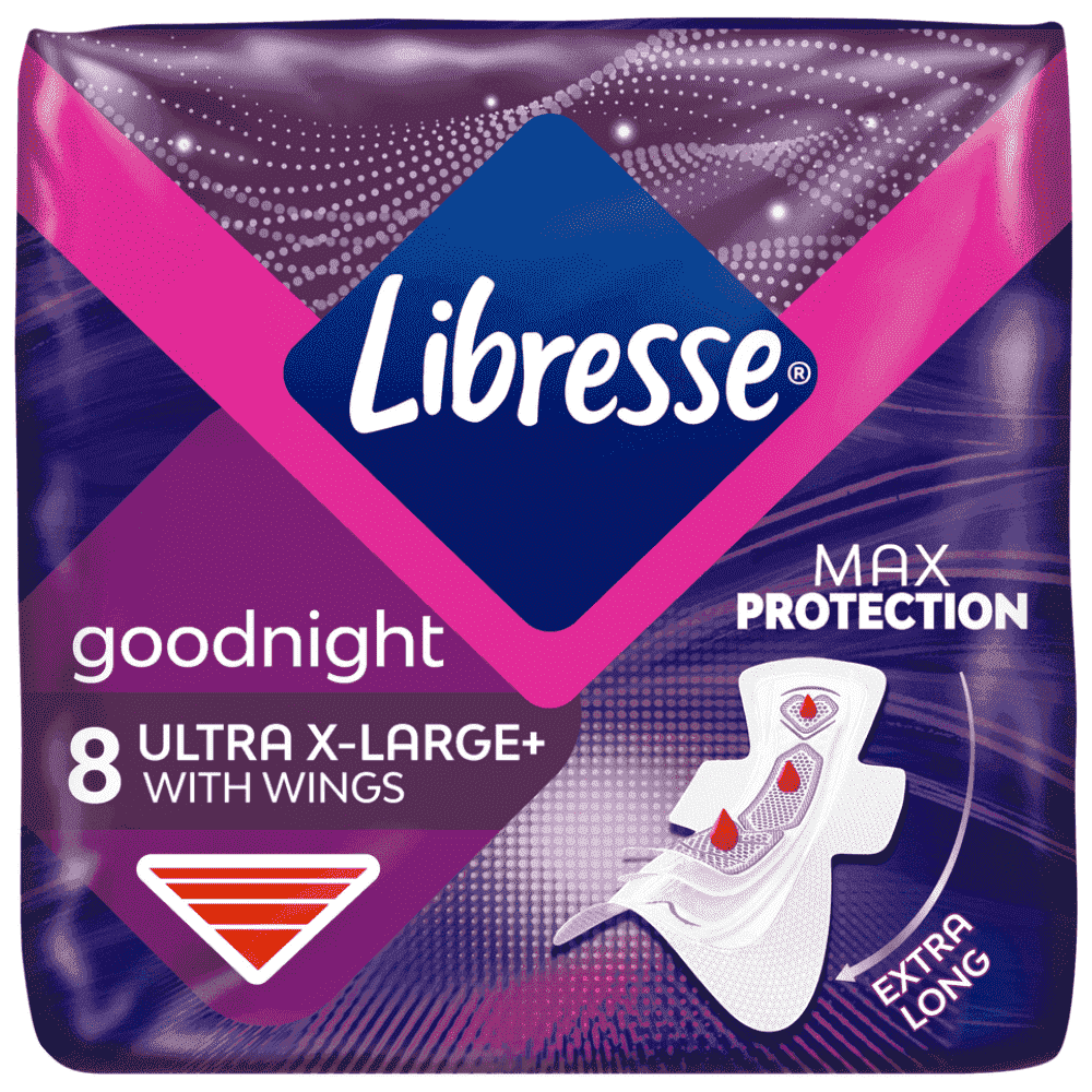 Libresse Ultra Goodnight Extra - extra προστασία για έναν ξέγνοιαστο ύπνο. Παρέχει προστασία έως και 10 ώρες, ακόμη και αν στριφογυρνάτε στον ύπνο σας. Οι λόγοι για να αγαπάτε: Ευρύτερο μπρός και πίσω Φράγματα κατά της διαρροής Υπερ απορροφητικός πυρήνας Φτερά για αξιόπιστη στερέωση Σε ατομική συσκευασία