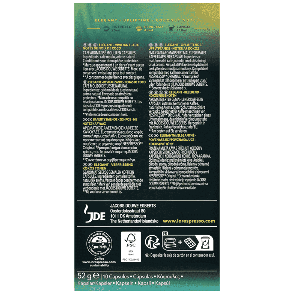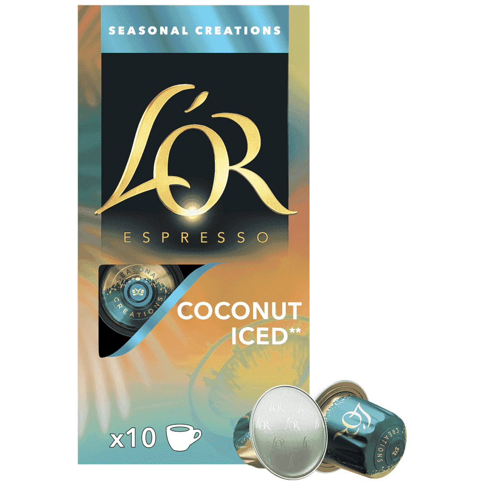 "Κάψουλες Συμβατές Με Μηχανές Nespresso* Original *Εμπορικό σήμα ιδιοκτησίας τρίτου που δεν συνδέεται με τη JACOBS DOUWE EGBERTS."L'Or Espresso Seasonal Coconut Iced Κάψουλες Καφέ Espresso συμβατές με μηχανές Nespresso* 10τεμ