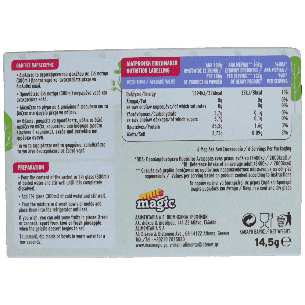 Διαλύετε το περιεχόμενο του φακέλου σε 1 1/2 ποτήρι (300ml) βραστό νερό και ανακατεύετε μέχρι να διαλυθεί καλά.