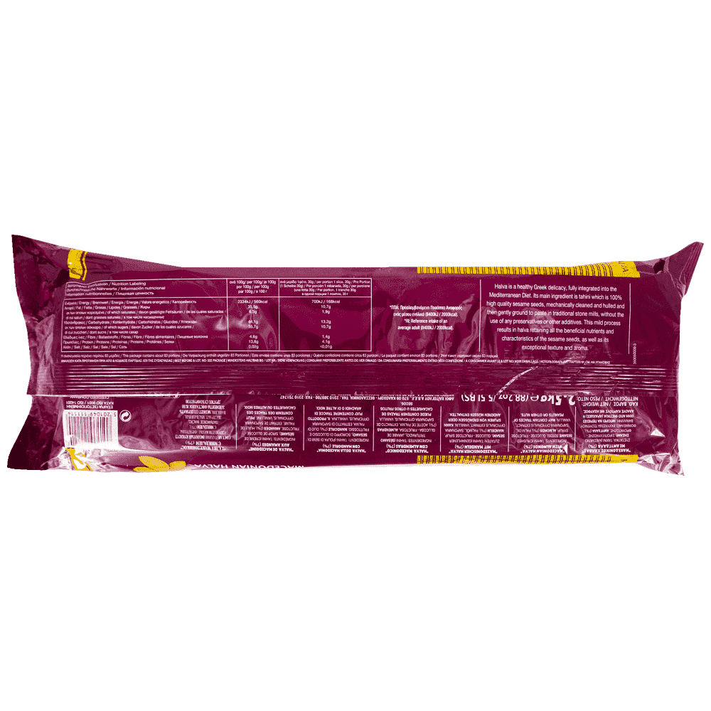 Χωρίς γλουτένη. Περιέχει σησάμι και αμύγδαλα. Μπορεί να περιέχει ίχνη από φιστίκια ή άλλους ξηρούς καρπούς.