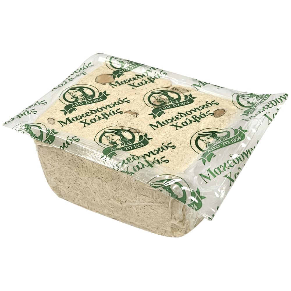Οι παραδοσιακές μέθοδοι παραγωγής συναντούν τη σύγχρονη τεχνολογία και οδηγούν σε ένα γλυκό με αφράτη, μαστιχωτή υφή, αυθεντικό χαρακτήρα και σταθερή ποιότητα, του οποίου οι γεύσεις αναδεικνύονται σταδιακά στον ουρανίσκο. Ο Μακεδονικός Χαλβάς με Αμύγδαλα παράγεται από ταχίνι, δηλαδή 100% αλεσμένο σουσάμι - έτσι, είναι πλήρως ενταγμένος στη Μεσογειακή διατροφή και έχει υψηλή περιεκτικότητα σε ασβέστιο, σίδηρο, μαγνήσιο και φυτικές ίνες. Με άλλα λόγια, αποτελεί ιδανική διατροφική επιλογή για όλες τις ώρες, προσφέροντας στον οργανισμό την απαραίτητη δύναμη και ενέργεια και χαρίζοντας πλούσια γεύση!