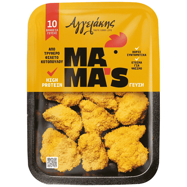 Οι παναρισμένες κοτομπουκιές Mama's Αγγελάκης παρασκευάζονται από τρυφερό φιλέτο κοτόπουλου, χωρίς την προσθήκη συντηρητικών. Ζουμερές εσωτερικά και extra τραγανές μπουκιές εξωτερικά οι οποίες προσφέρουν ισορροπία γεύσης και υφής σε κάθε μπουκιά. Έτοιμα για ψήσιμο, αποτελούν ιδανική επιλογή για γρήγορα και ποιοτικά γεύματα.