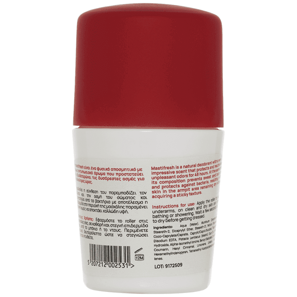 Το Mastifresh Deodorant είναι η νέα γενιά αποσμητικών και θα γίνει η πιο απολαυστική καθημερινή σας συνήθεια. Είναι ένα φυσικό αποσμητικό με άκρως εντυπωσιακό άρωμα που προστατεύει και εξουδετερώνει τις δυσάρεστες οσμές για 48 ολόκληρες ώρες. Παράλληλα η σύνθεση του παρεμποδίζει τον ιδρώτα και την οσμή του σώματος και προστατεύει από τα βακτήρια με αποτέλεσμα η επιδερμίδα στη περιοχή της μασχάλης παραμένει στεγνή χωρίς να αποκτάει κολλώδη υφή.