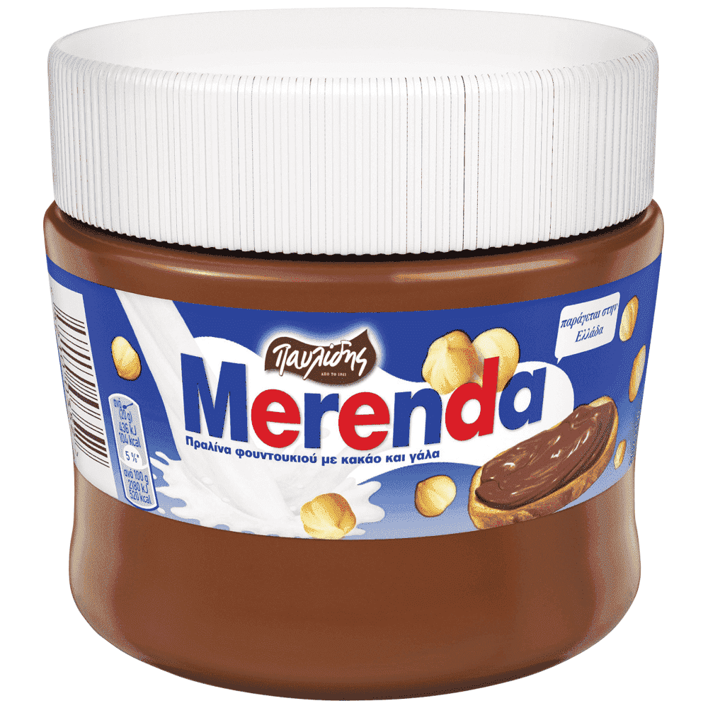 Η πρώτη Merenda δημιουργήθηκε στο εργοστάσιο Παυλίδη της οδού Πειραιώς και έκλεψε αμέσως την καρδιά όχι μόνο των μικρών αλλά και των μεγάλων. Σήμερα δεν είναι απλά η πραλίνα φουντουκιού που αγαπάμε περισσότερο, αλλά και ο πιο γλυκός δεσμός με την παιδική μας ηλικία.