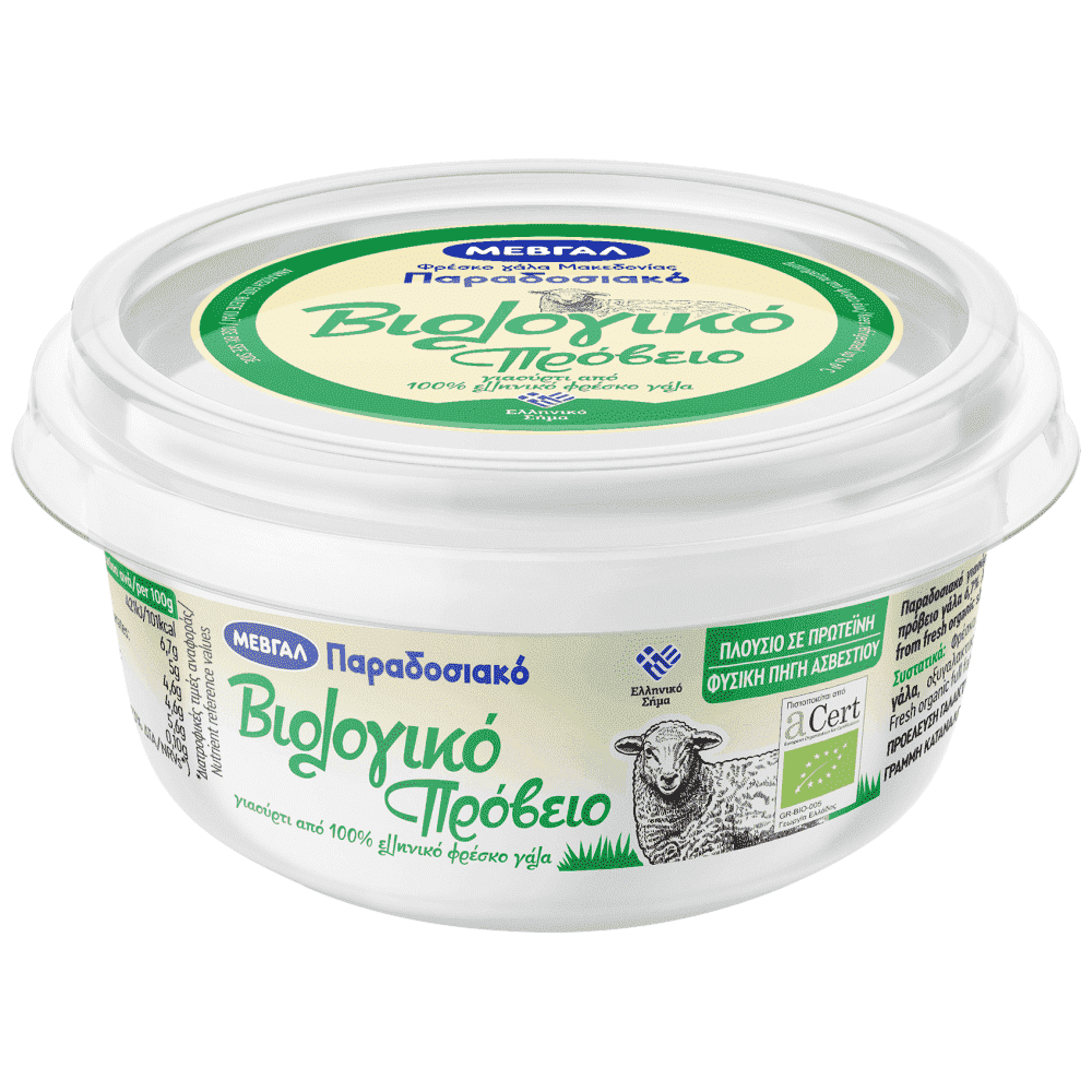 Αυθεντική γεύση παραδοσιακού πρόβειου γιαουρτιού με την παραδοσιακή «πέτσα». Με 100% φρέσκο ελληνικό βιολογικό γάλα, το οποίο συλλέγεται από ελληνικές πιστοποιημένες βιολογικές κτηνοτροφικές μονάδες. Πλούσιο σε πρωτεΐνη και φυσική πηγή ασβεστίου, ιδανικό για όσους αναζητούν αγνή απόλαυση και υψηλή θρεπτική αξία.