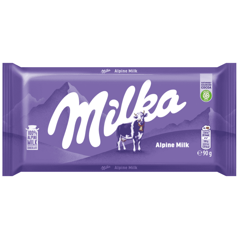 ζάχαρη,βούτυρο κακάο, κακαόμαζα, αποβουτυρωμένο ΓΑΛΑ σε σκόνη, ορός ΓΑΛΑΚΤΟΣ σε σκόνη, βούτυρο ΓΑΛΑΚΤΟΣ, γαλακτωματοποιητής (λεκιθίνες ΣΟΓΙΑΣ), ΦΟΥΝΤΟΥΚΟΠΑΣΤΑ, άρωμα. Στερεά γάλακτος: 33% τουλάχιστον στην σοκολάτα γάλακτος Άλπεων. Για αλλεργιογόνα δείτε τα συστατικά με έντονους χαρακτήρες. Μπορεί να περιέχει άλλους ξηρούς καρπούς και σιτάρι.