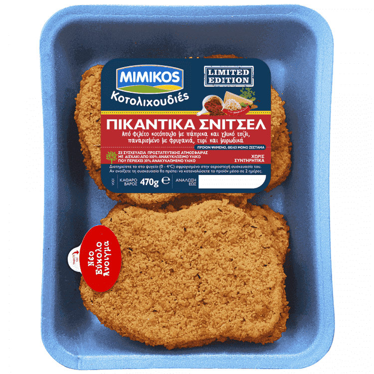 Πικάντικα Σνίτσελ από φιλέτο κοτόπουλο με πάπρικα και γλυκό τσίλι, παναρισμένο με φρυγανιά, τυρί και μυρωδικά