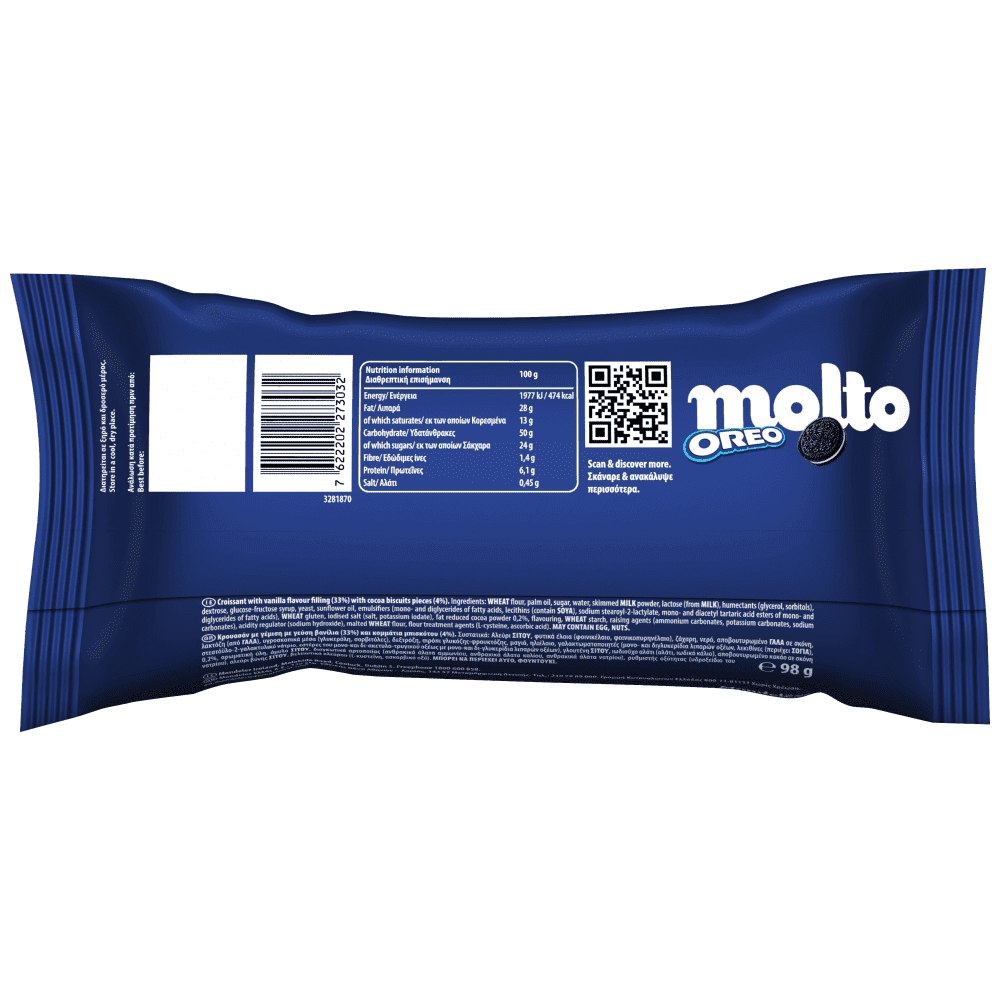 Αλεύρι ΣΙΤΟΥ, φυτικά έλαια (φοινικέλαιο, φοινικοπυρηνέλαιο), ζάχαρη, νερό, αποβουτυρωμένο ΓΑΛΑ σε σκόνη, λακτόζη (από ΓΑΛΑ), υγροσκοπικά μέσα (γλυκερόλη, σορβιτόλες), δεξτρόζη, σιρόπι γλυκόζης-φρουκτόζης, μαγιά, ηλιέλαιο, γαλακτωματοποιητές (μονο- και διγλυκερίδια λιπαρών οξέων, λεκιθίνες (περιέχει ΣΟΓΙΑ), στεατόϋλο-2-γαλακτυλικό νάτριο, εστέρες του μονο-και δι-ακετυλο-τρυγικού οξέως με μονο-και δι-γλυκερίδια λιπαρών οξέων), γλουτένη ΣΙΤΟΥ, ιωδιούχο αλάτι (αλάτι, ιωδικό κάλιο), αποβουτυρωμένο κακάο σε σκόνη 0,2%, αρωματική ύλη, άμυλο ΣΙΤΟΥ, διογκωτικά αρτοποιίας (ανθρακικά άλατα αμμωνίου, ανθρακικά άλατα καλίου, ανθρακικά άλατα νατρίου), ρυθμιστής οξύτητας (υδροξείδιο του νατρίου), αλεύρι βύνης ΣΙΤΟΥ, βελτιωτικά αλεύρου (L-κυστεΐνη, ασκορβικό οξύ). ΜΠΟΡΕΙ ΝΑ ΠΕΡΙΕΧΕΙ ΑΥΓΟ, ΦΟΥΝΤΟΥΚΙ. Αλλεργιογόνα
