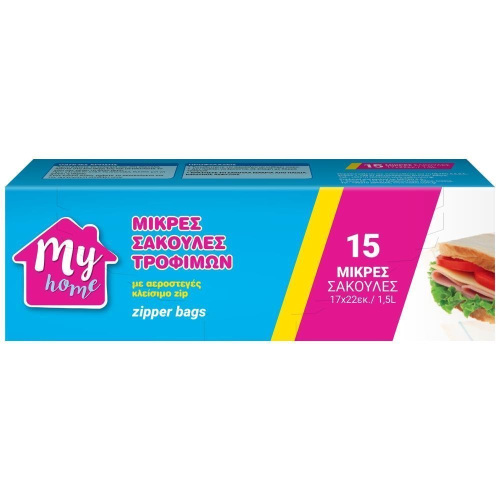 My Home Σακούλες Τροφίμων Zip Μικρές 17x22cm 15τεμ