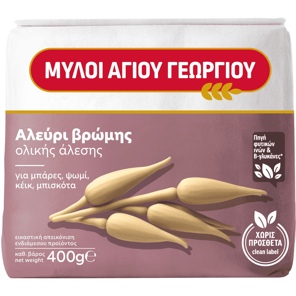 Το αλεύρι Βρώμης Ολικής Άλεσης έχει υψηλή διατροφική αξία, γιατί με αυτό παράγονται τελικά προϊόντα (ψωμί σύμφωνα με την συνταγή της συσκευασίας) τα οποία αποτελούν πηγή εδώδιμων ινών. Επίσης, περιέχει β-γλυκάνες οι οποίες συμβάλλουν στη διατήρηση των φυσιολογικών επιπέδων χοληστερόλης στο αίμα.