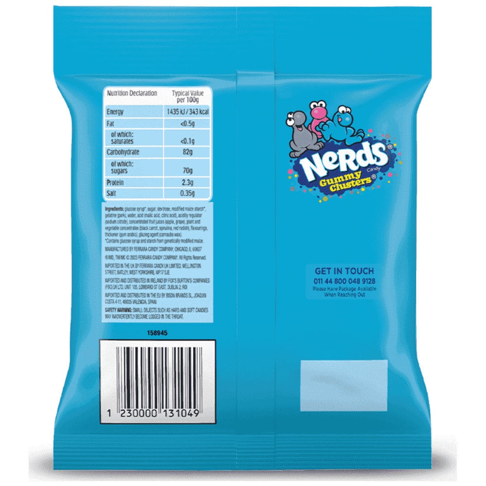 Απελευθέρωσε τις αισθήσεις σου. Τα NERDS Gummy Clusters συνδυάζουν έναν μαλακό, μαστιχωτό πυρήνα ζελεδάκι με φρουτένια γεύση και μια πολύχρωμη, τραγανή επικάλυψη από καραμέλες NERDS. Κάθε μπουκιά προσφέρει μια έκρηξη γεύσης, έναν απολαυστικά μαστιχωτό πυρήνα και εκείνη την εμβληματική τραγανότητα των NERDS!