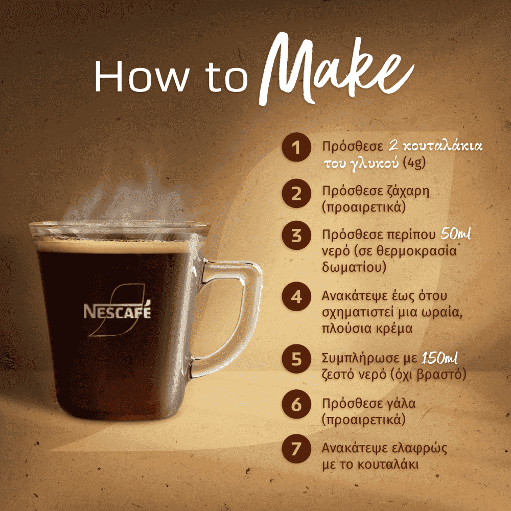 Extra tips - Ανακάτεψε με γρήγορες κυκλικές κινήσεις με το κ. γλυκού για να προκύψει μια όμορφη, πλούσια κρέμα. - Όταν συμπληρώνουμε το υπόλοιπο νερό, θα πρέπει να γίνεται με τη χρήση κανάτας ή άλλου δοχείου με ομαλή ροή από το πλάι, για να διατηρηθεί η κρέμα μας