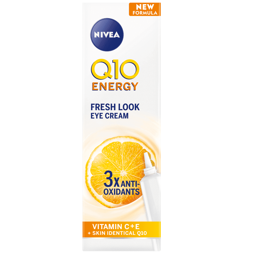 Η NIVEA Q10 ENERGY Κρέμα Ματιών υποστηρίζει την ικανότητα της επιδερμίδας να βελτιώνει τον ενεργειακό της μεταβολισμό* προστατεύοντάς την από τις ελεύθερες ρίζες. Η σύνθεση είναι εμπλουτισμένη με τρία αντιοξειδωτικά: 100% ταυτόσημο με την επιδερμίδα Q10, βιταμίνη C και βιταμίνη Ε. Η περιποίηση των ματιών ανακουφίζει από τα σημάδια της κούρασης και της θαμπάδας και συσφίγγει απτά το περίγραμμα των ματιών. Επιπλέον, μειώνει ορατά το πόδι της χήνας και παρέχει στην επιδερμίδα σας εντατική υγρασία για δροσερή όψη επιδερμίδας, όλη την ημέρα. Η συμβατότητα με την επιδερμίδα και τα μάτια αυτής της φροντίδας ματιών έχει ελεγχθεί δερματολογικά και οφθαλμολογικά. *in vitro