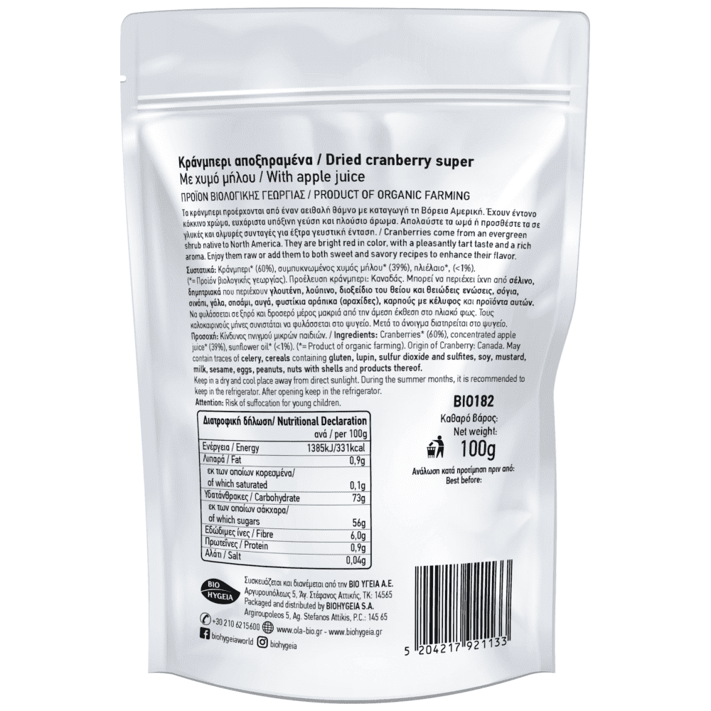 Το cranberry (κράνμπερι), παρέχει πληθώρα θρεπτικών συστατικών ενώ παράλληλα είναι «φτωχό» σε θερμίδες. Ένα από τα βασικότερα συστατικά που μας δίνει το cranberry είναι η βιταμίνη C, καθώς επίσης, είναι καλή πηγή βιταμινών του συμπλέγματος Β (Β1, Β2, Β3) και β - καροτενίου (προβιταμίνη Α), το οποίο μετατρέπεται στον οργανισμό σε βιταμίνη Α. Τα κυριότερα μέταλλα που βρίσκονται στο μούρο είναι το κάλιο, το ασβέστιο και το μαγνήσιο.