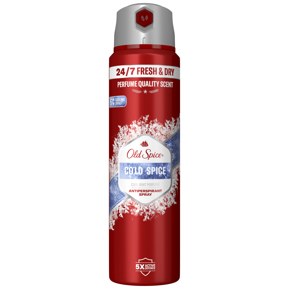 "Ετοιμαστείτε για μια απίστευτα δροσερή αίσθηση με το Old Spice Cold Spice 24/7 Fresh & Dry* Αντιιδρωτικό Σπρέι! Νιώστε μια άμεση αίσθηση δροσιάς με δροσιστικό αποτέλεσμα -5°C** που σας προσφέρει φρεσκάδα όλη μέρα. Η σύνθεση 5απλής ενεργής άμυνας του Old Spice προσφέρει άρωμα που διαρκεί, προστασία από τις οσμές, προστασία από τον ιδρώτα, απελευθέρωση αρώματος που ενεργοποιείται από τον ιδρώτα και τεχνολογία αρώματος που δεν ξεθωριάζει, διασφαλίζοντας ότι παραμένετε προστατευμένοι στις πιο σημαντικές αναζητήσεις σας. Απολαύστε εξαιρετική προστασία από τις οσμές με το υψηλής ποιότητας άρωμα δροσερής μέντας, εμπλουτισμένο με αρωματικά βότανα και αναζωογονητικό ξύσμα λεμονιού. Πείτε αντίο στους λευκούς λεκέδες και καλωσορίστε μια αναζωογονητική καλοκαιρινή διάθεση - σαν να μεταφέρεστε σε μια παραλία με πιγκουίνους που σερφάρουν με στυλ! (*με καθημερινή χρήση, **το δροσιστικό αποτέλεσμα -5C στην επιδερμίδα μπορεί να διαφέρει).