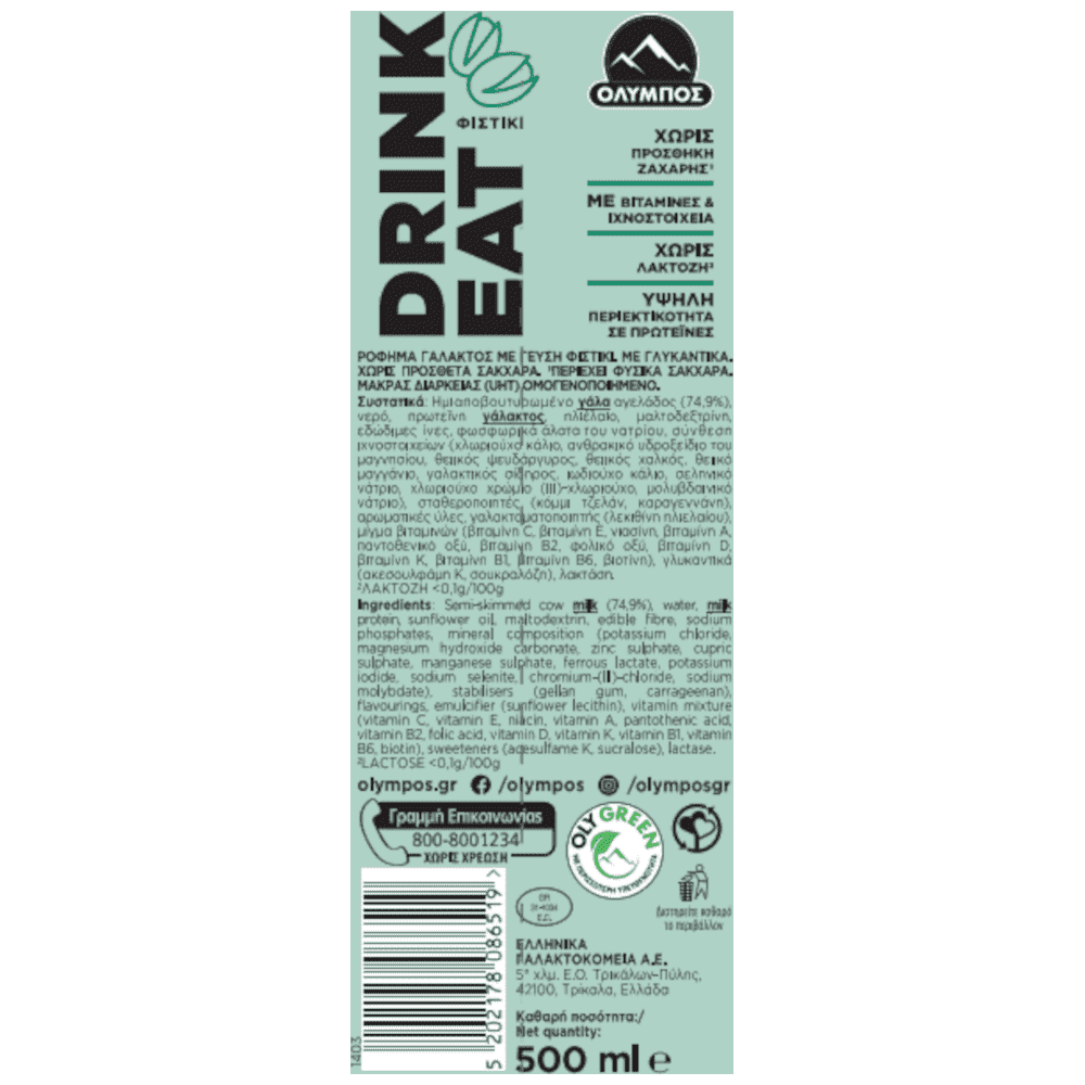 Ημιαποβουτυρωμένο γάλα αγελάδος (74,9%), νερό, πρωτεΐνη γάλακτος, ηλιέλαιο, μαλτοδεξτρίνη, εδώδιμες ίνες, φωσφωρικά άλατα του νατρίου, σύνθεση ιχνοστοιχείων (χλωριούχο κάλιο, ανθρακικό υδροξείδιο του μαγνησίου, θειικός ψευδάργυρος, θειικός χαλκός, θειικό μαγγάνιο, γαλακτικός σίδηρος, ιωδιούχο κάλιο, σεληνικό νάτριο, χλωριούχο χρώμιο (ΙΙΙ)-χλωριούχο, μολυβδαινικό νάτριο), σταθεροποιητές (κόμμι τζελάν, καραγεννάνη), αρωματικές ύλες, γαλακτοματοποιητής (λεκιθίνη ηλιελαίου), μίγμα βιταμινών (βιταμίνη C, βιταμίνη Ε, νιασίνη, βιταμίνη Α, παντοθενικό οξύ, βιταμίνη Β2, φολικό οξύ, βιταμίνη D, βιταμίνη Κ, βιταμίνη Β1, βιταμίνη Β6, βιοτίνη), γλυκαντικά (ακεσουλφάμη Κ, σουκραλόζη), λακτάση.Αλλεργιογόνα