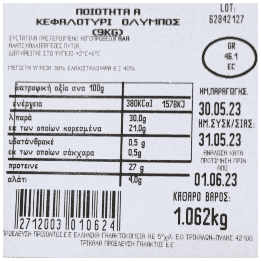| Ενέργεια (kJ/kcal) | 1578 kJ | 473 kJ | 6% |