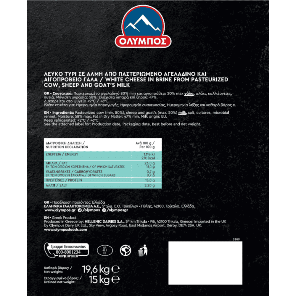 | Λιπάρα | 23g | 6,9g | 10% |
