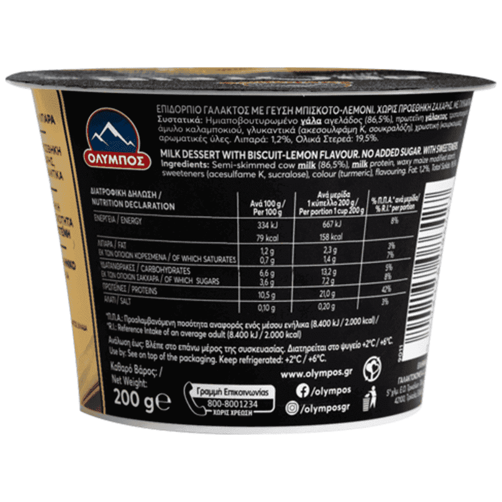 | Ανά 100g | Ανά μερίδα 1 κύπελλο 200gr | % Π.Π.Α.* ανά μερίδα | |