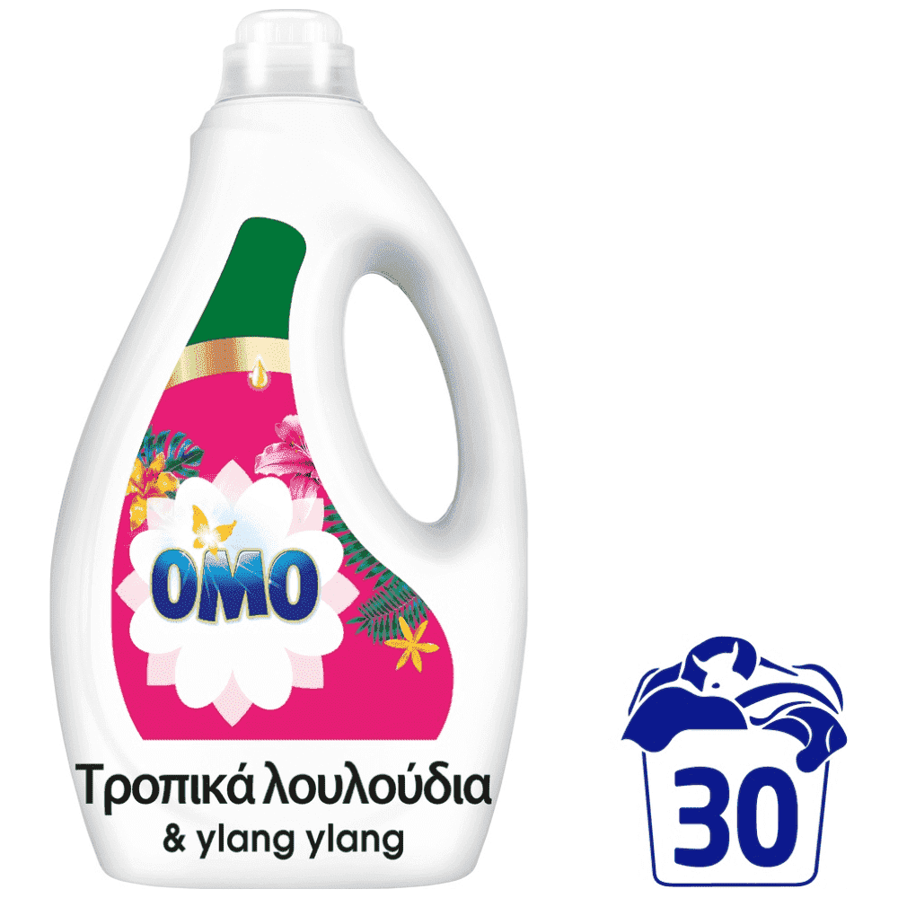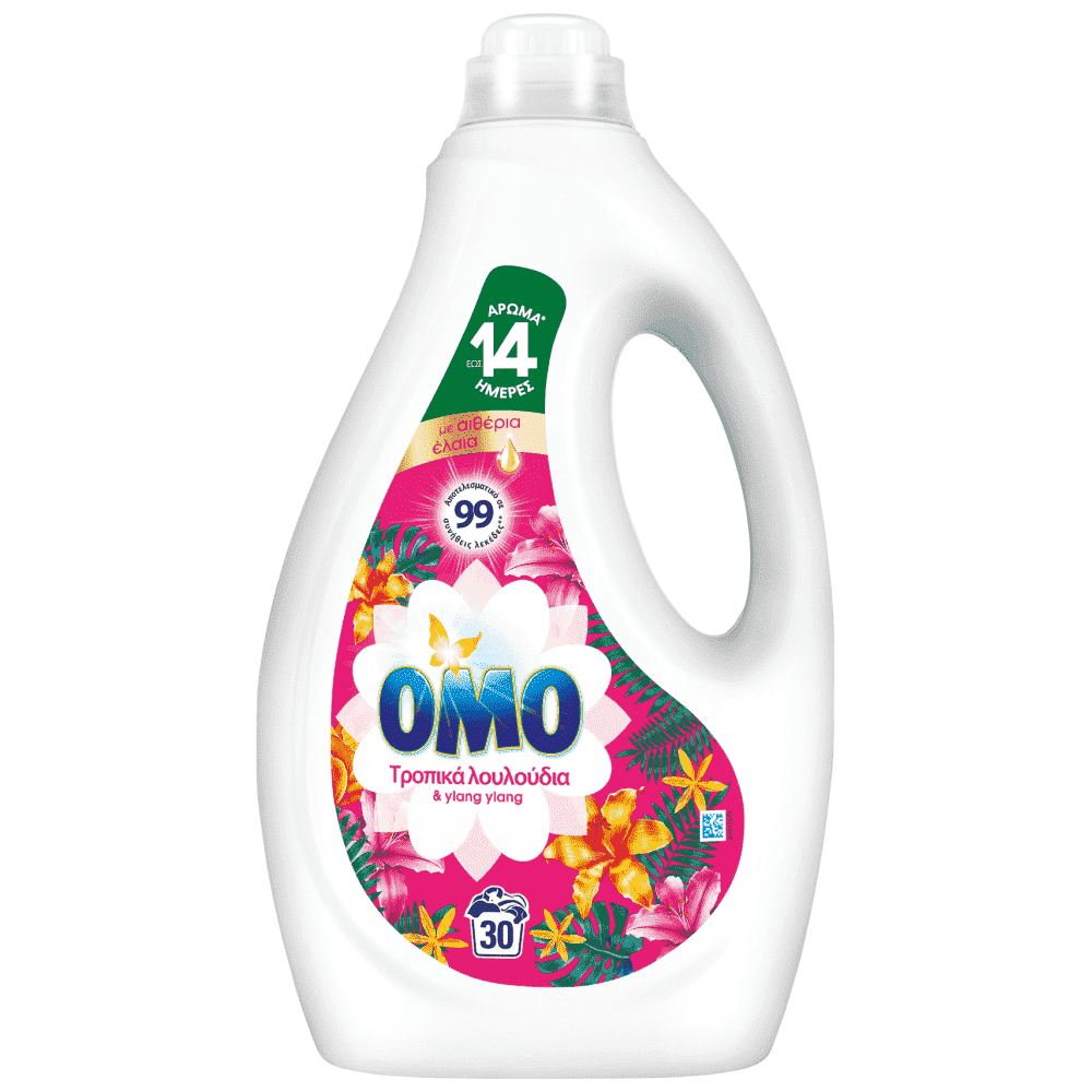 Το ΟΜΟ υγρό απορρυπαντικό για το πλυντήριο με Τροπικά Λουλούδια & Ylang ylang σας προσφέρει αστραφτερή καθαριότητα μαζί με μια μοναδική έκρηξη αρώματος που αναζωογονεί τις αισθήσεις.