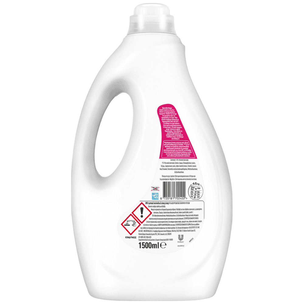 Προκαλεί σοβαρή οφθαλμική βλάβη. Μπορεί να προκαλέσει αλλεργική δερματική αντίδραση. Περιέχει C12-15 Pareth-7, Sodium Dodecylbenzenesulfonate, Sodium Laureth Sulfate, TEA-Dodecylbenzenesulfonate, Methylisothiazolinone, Octylisothiazolinone. Μακριά από παιδιά. Να φοράτε προστατευτικά γάντια και μέσα ατομικής προστασίας για τα μάτια/πρόσωπο. ΣΕ ΠΕΡΙΠΤΩΣΗ ΕΠΑΦΗΣ ΜΕ ΤΑ ΜΑΤΙΑ: Ξεπλύνετε προσεκτικά με νερό για αρκετά λεπτά. Εάν υπάρχουν φακοί επαφής, αφαιρέστε τους, εφόσον είναι εύκολο. Συνεχίστε να ξεπλένετε. ΣΕ ΠΕΡΙΠΤΩΣΗ ΕΠΑΦΗΣ ΜΕ ΤΟ ΔΕΡΜΑ: Πλύντε με άφθονο νερό. Εάν δεν υποχωρεί ο οφθαλμικός ερεθισμός: Συμβουλευθείτε/Επισκεφθείτε γιατρό. Εάν παρατηρηθεί ερεθισμός του δέρματος ή εμφανιστεί εξάνθημα: Συμβουλευθείτε/Επισκεφθείτε γιατρό. Καλέστε αμέσως το ΚΕΝΤΡΟ ΔΗΛΗΤΗΡΙΑΣΕΩΝ ή ένα γιατρό.