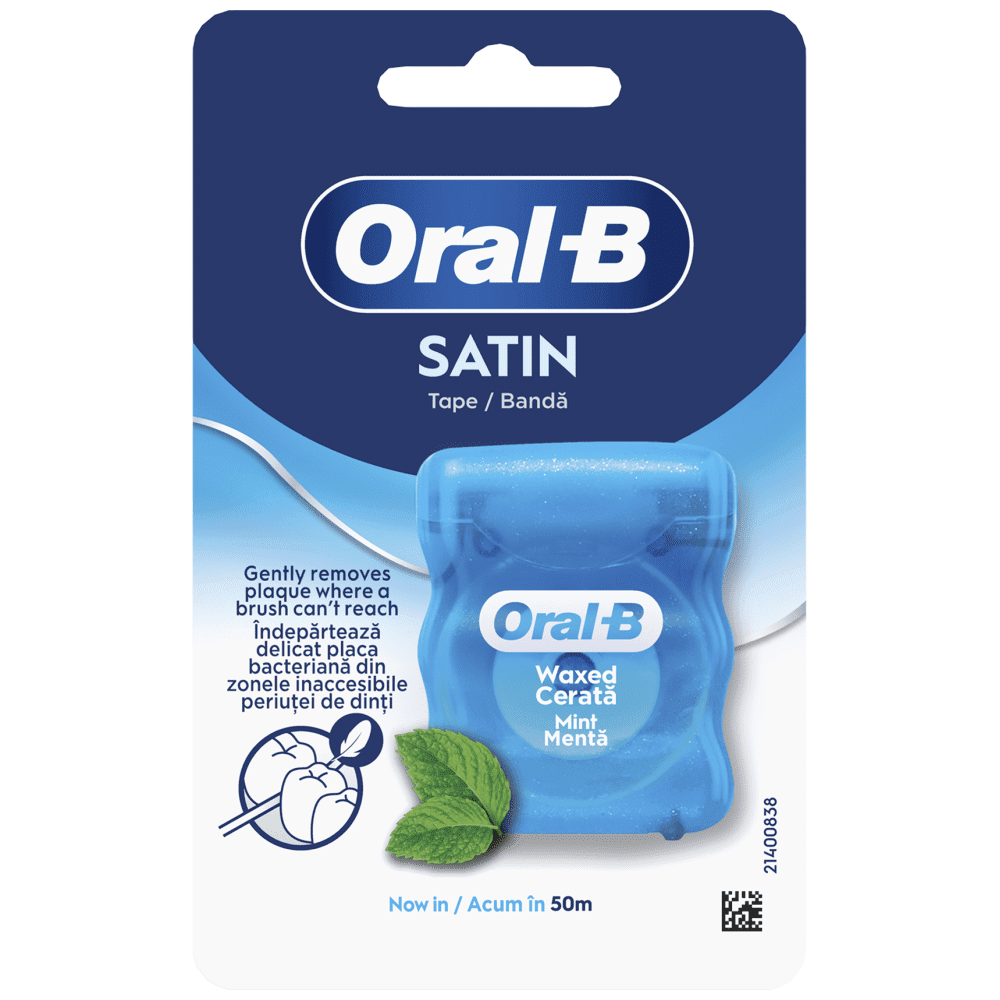 -Το νήμα Oral-B Satin Tape βοηθά στη διατήρηση της οδοντικής υγιεινής και καθαρίζει ανάμεσα στα δόντια