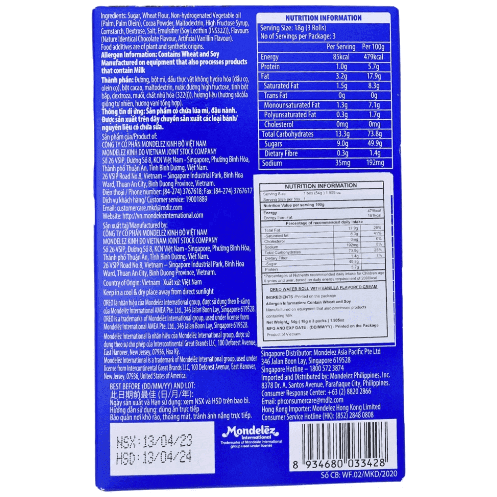 Τα OREO Wafer Roll Vanilla προσφέρουν την αγαπημένη εμπειρία OREO σε μια ελαφριά, τραγανή γκοφρέτα. Με κρεμώδη βανίλια, αποτελούν μια απολαυστική και ισορροπημένη γεύση για κάθε στιγμή. Ιδανικά για σνακ on-the-go ή ως συνοδευτικό ροφήματος, προσθέτουν premium χαρακτήρα σε κάθε απόλαυση.