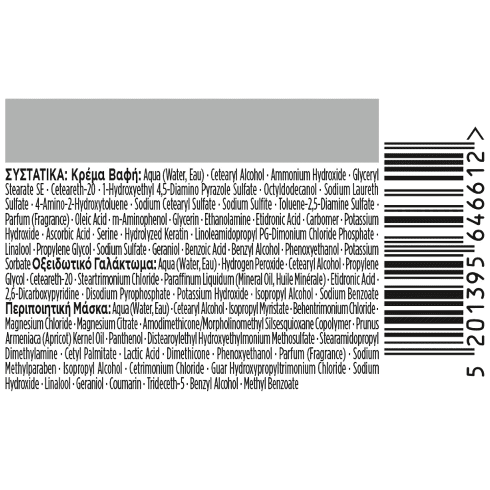 Μόνιμη Κρέμα Βαφή με Σύστημα Τριπλής Περιποίησης Ένταση Χρώματος Μεγάλης Διάρκειας Κλειδώνει το χρώμα για προστασία από το ξεθώριασμα Επιπλέον περιποίηση κατά τη διάρκεια και μετά τη βαφή 100% κάλυψη λευκών