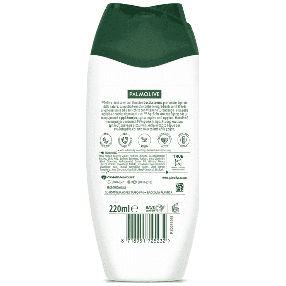 Aqua, Sodium Laureth Sulfate, Sodium Chloride, Cocamidopropyl Betaine, Citric Acid, Sodium Benzoate, Parfum, Coco-Glucoside, Glycol Distearate, Hydrogenated Castor Oil, Glyceryl Oleate, Glyceryl Stearate, Tocopheryl Acetate, Trisodium Ethylenediamine Disuccinate, Mel, Prunus Amygdalus Dulcis Seed Extract, Tocopherol, Amyl Cinnamal, Coumarin, Hexyl Cinnamal, Linalool.